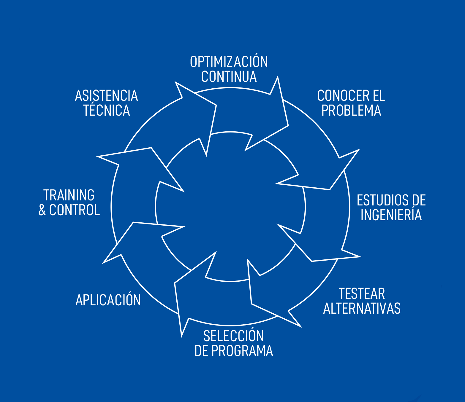 Desarrollar tecnologías, productos y servicios que contribuyen a un trabajo más eficiente en el tratamiento de agua en los procesos industriales de nuestros clientes y así ayudar en la sostenibilidad de nuestro planeta con el ahorro del agua en cada proceso.